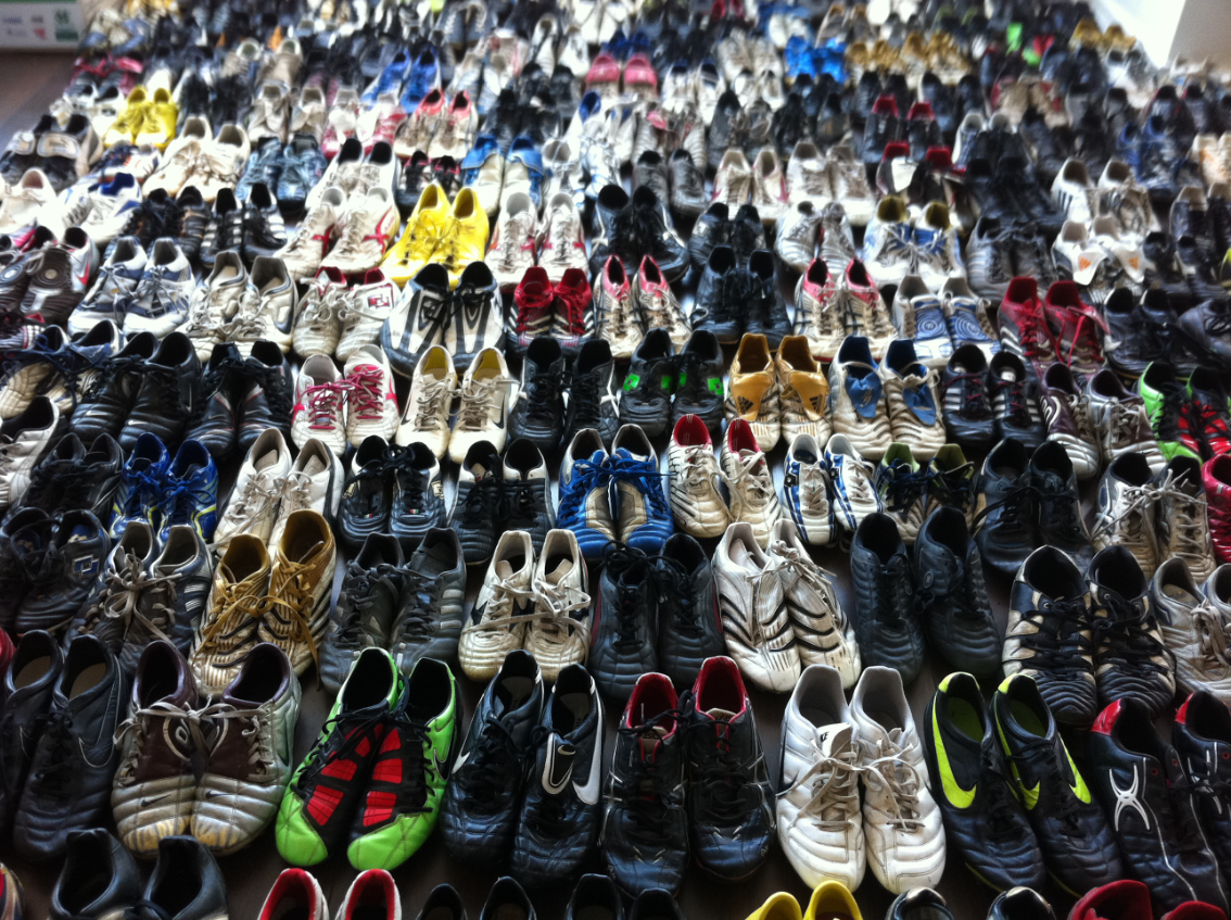 The Collection Campaign: The collection campaign ran for three weeks with heavy media support for the first fortnight. I scrounged three successive Fridays off work so that I could drive around the region and collect the boots from the Collection Boxes. The first week saw just 23 pairs of boots donated. Worrying times – is this idea going to flop?