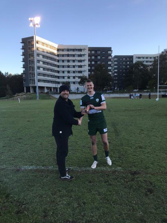 Rory played his first game for the Juniors in 2009 at 7 years of age and played every year in Juniors until he was old enough to play grade. Rory played rep footy from 2012 – 2018 with Wildfires and NSW Country Juniors 2017-2018, he made the NSW Country Colts in 2021. Rory then made his First Grade Debut 2021 v University (photo with Mick Gill below) and has been killing it ever since.