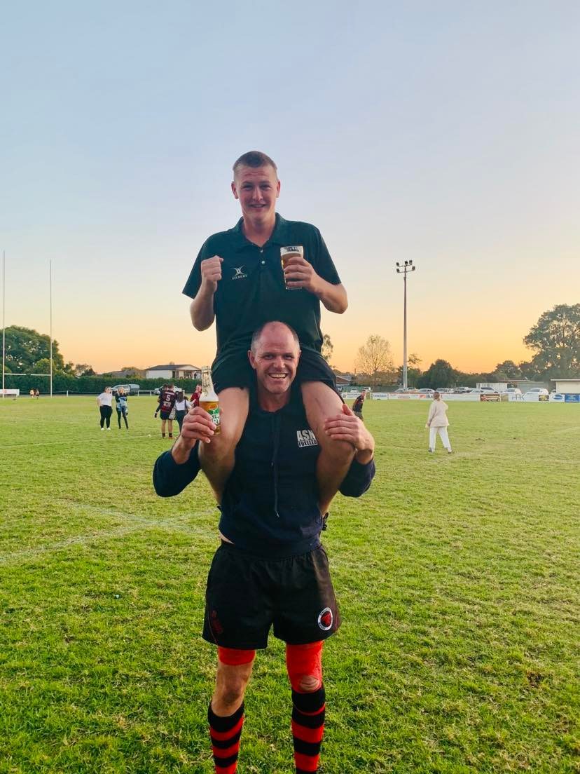 As green as Pete Alcock’s dulcet tones reading the score, a schnitzel burger or a try in green corner, this kid has seen it all. I’ve seen him as a kid, a teenager, a colt and now as a first grade scrum half. Many will reminisce of the good times and beers they have shared over many years with our own Rory Ryan, which in itself is quite an achievement for a 19 year old. Just like the photo (below), I’ve still got no hair and he has blonde hair, but the positions are swapped, and each weekend I get to see this great young guy out there putting on a masterclass and creating the next chapter in the story of Merewether Carlton. So keep being you mate, keep being silly, get Merewether Carlton back to the rightful place as kings and remember that big girls don’t cry. Jamie